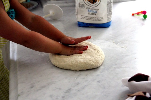 As you may easily determine after wandering this site a bit, cooking is not my forte. Not an ounce of interest hides within me. Baking on the other side, is a topic I can lose myself in for hours… show me the books and recipes including butter, sugar, flour, salt, etc. Lucky for my little ones, dad loves to have assistance from sous chefs in the kitchen and up until their arrival, he had little to none. We decided to make pizza dough from scratch this weekend because it is something my oldest little one loves to eat, we are clearing out the summer garden as the basil is tired of sleeping outdoors with the pumpkins and the dough is a new recipe for the kiddies to explore.