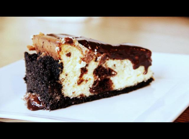 This is one of those cakes that you set out on the table immediately, prior to dinner being served, as a reminder that there is a dessert that will follow the main course which requires room to be spared. A smooth cheesecake with chunks of brownie throughout like little buried treasures, held together with a crushed crunchy-cookie crust and topped with a velvety puddle of c.h.o.c.o.l.a.t.e. ganache on top, make this treat one that will have you seriously loving life. It is not only gorgeous to look at, but will live up to everything your heart and soul require.
