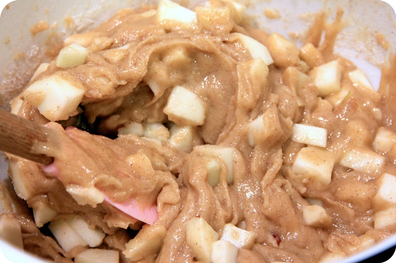 - Fold in the apples by hand using a wooden spoon, or a spatula, or a fork. Again, roll with it.