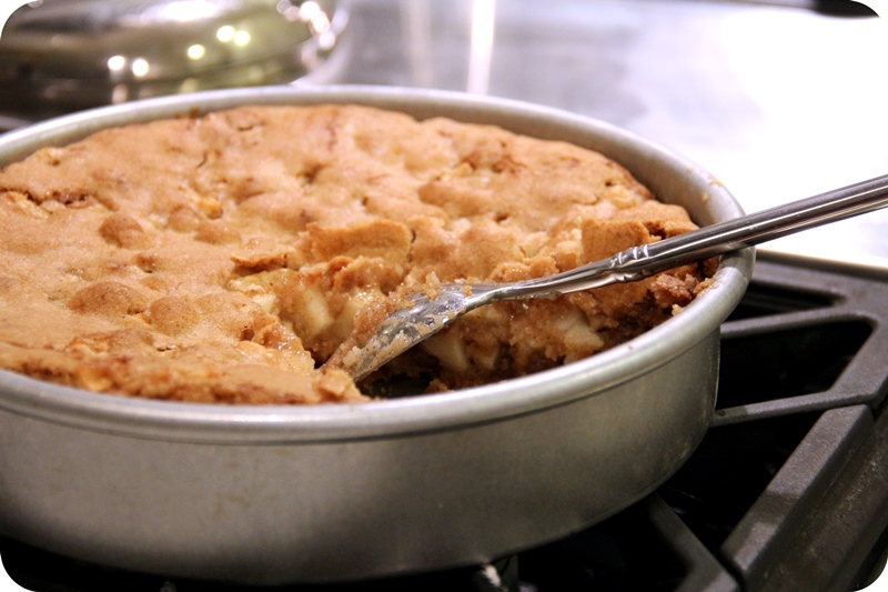 This is the season for apples, which is perfect because it also happens to be the time for apple cake, a spoon, and some serious DVR work. I love this “cake” because it’s not so much cake… It’s more of the “scoop up a few spoonfuls, hand it a date with vanilla ice cream, and don’t ever say the word gym again” sort of treat. The top is a nice thin crunchy layer which disguises a sea of warm, gooey, cinnamon apple goodness underneath. As I always say… “it may not be a good friend to your waistline, but it sure is a super friend for your soul.”