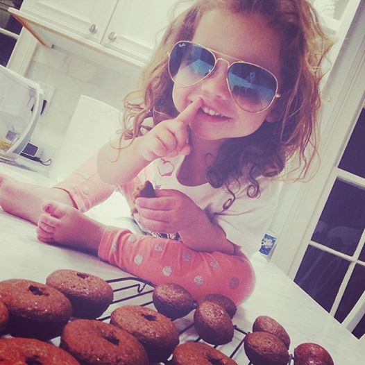 Although they were labeled as chocolate doughnuts/donuts, I found that the chocolate was matched up evenly with the amount of the nutmeg flavor.  These are not “death by chocolate” treats.  Think: subtle chocolate, ooh and nutmeg too?! type flavor. They baked quickly, held up nicely to the careful and thought-out dressing techniques of kiddies under 5 and were devoured immediately.
