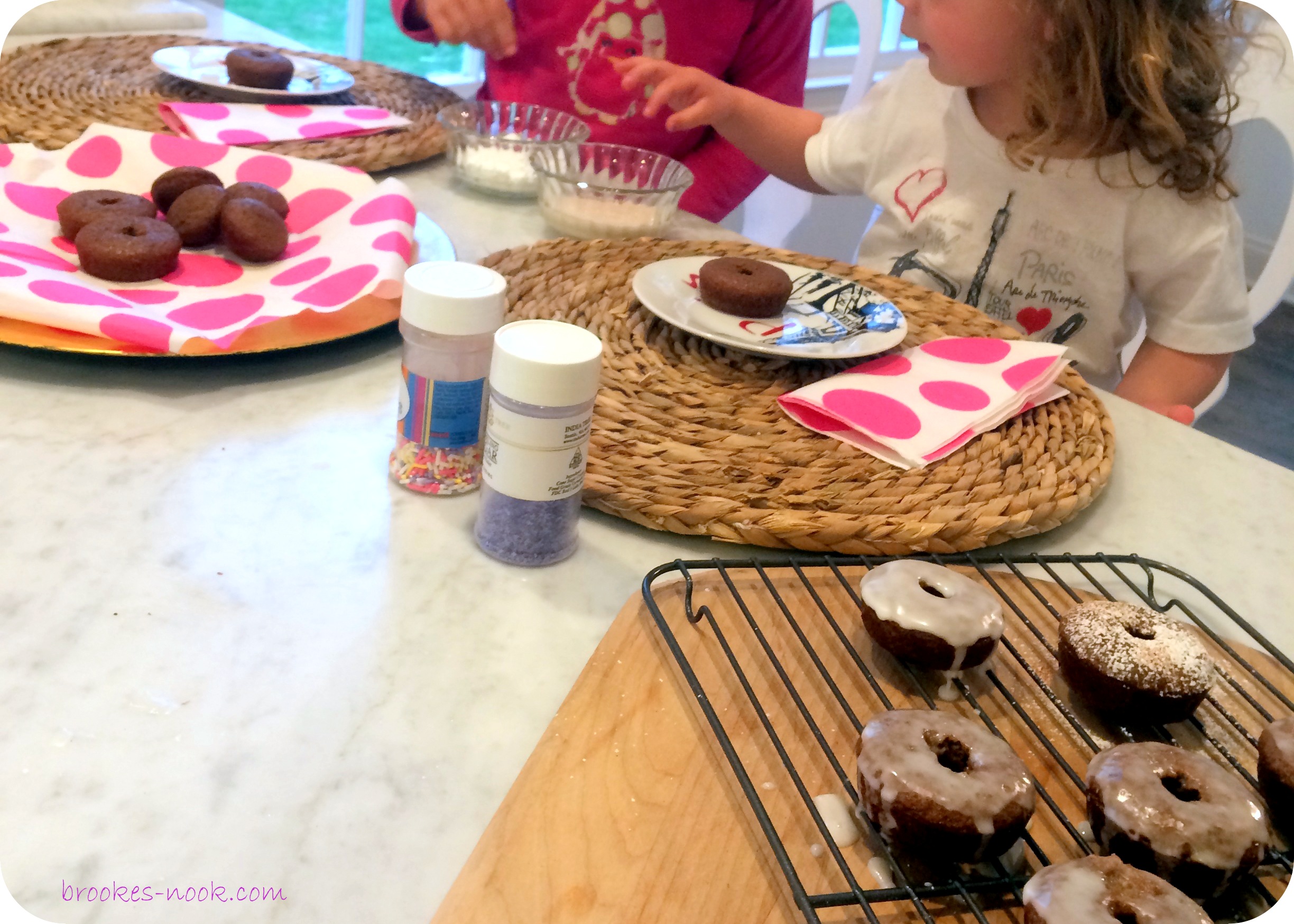 Another Con:  my oldest was VERY peeved that “I spent ALL morning making them a doughnut/donut buffet and now they have NO time to play before school??!!  UGH, THE.NERVE.OF.YOU.MOM!”  Worry not my friends… another doughnut/donut down the trap immediately erased those agitated words right from my soul.  Then I had another, for additional buffering.  You can never be too careful.